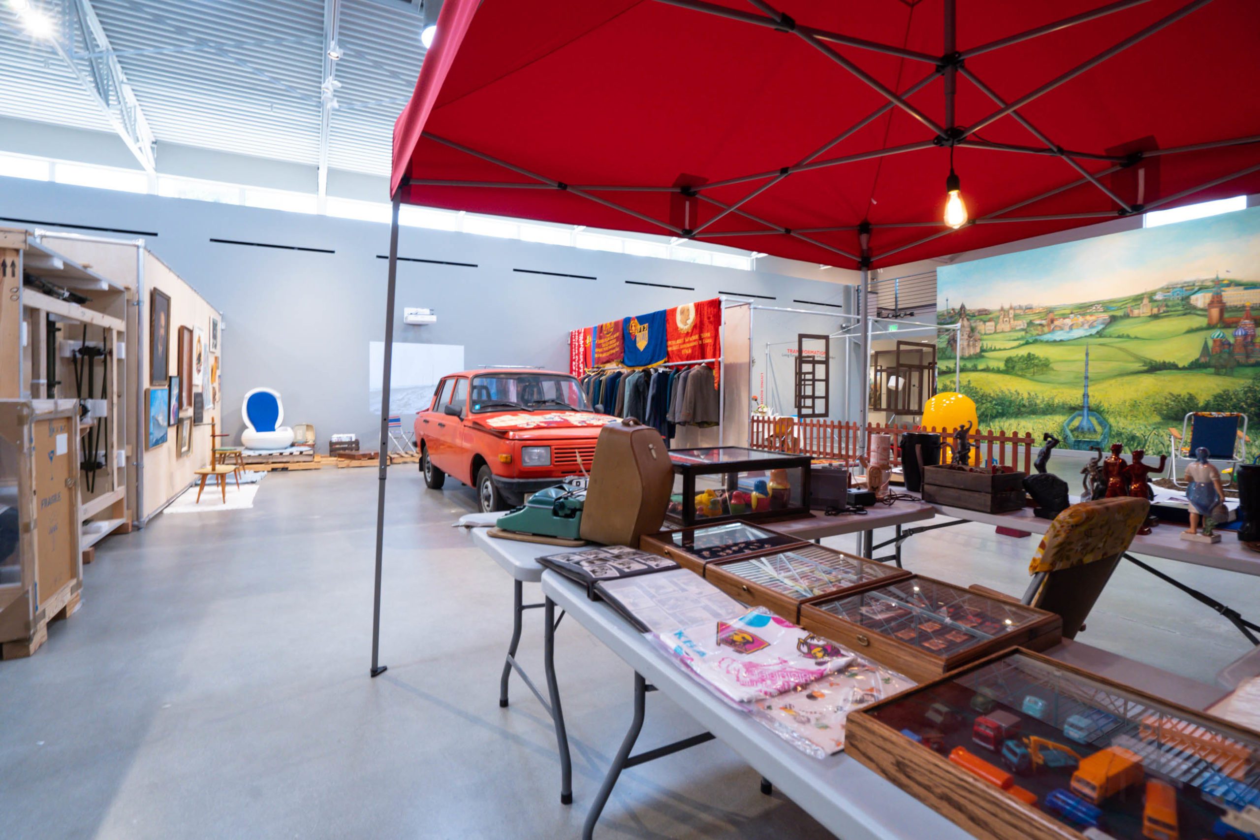 The series of (mostly) peaceful revolutions that took down the Berlin Wall effectively ended state socialism in Eastern Europe, and brought not just a political but also a material transformation. Countless people who lived through socialism discarded the household and consumer items they had lived with and loved or hated for many years, as they finally had access to higher-standard goods. Huge chunks of socialist material culture ended up in dumping grounds or flea markets. The Wende Museum was founded with the mission of safeguarding these materials from oblivion. But with historical distance and more critical feelings toward the realities of post-socialist society, historical memory took a new turn and people started to develop feelings of nostalgia. As a consequence, flea market items rose in price and prestige while the Wende Museum continued to collect them. This exhibition presents the metamorphosis of household and consumer goods from objects of everyday life to items in a museum collection, by way of flea markets, and invites contemporary artists to position them in the here and now.